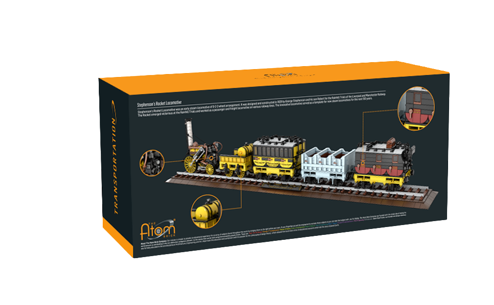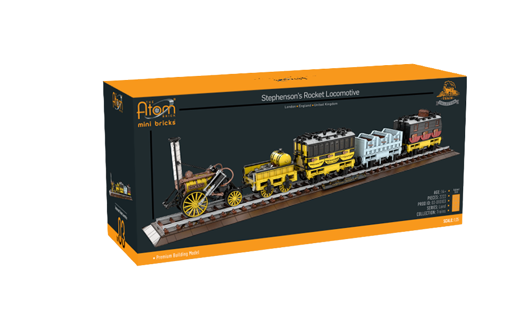 Build and learn about the history of Stephenson's Rocket using The Atom Brick mini bricks. The completed set features 2,224 parts and is at a 1:25 scale.